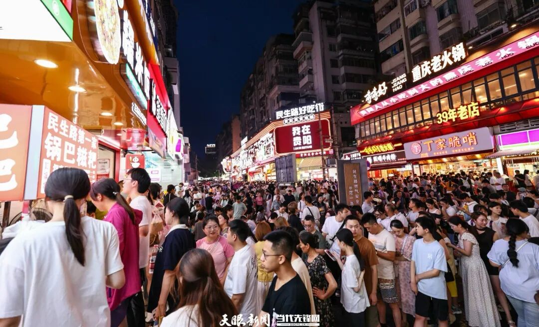 民生路人潮涌动,游客在排队品尝美食。
