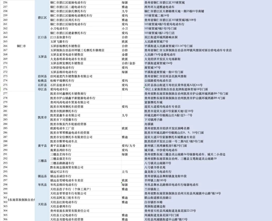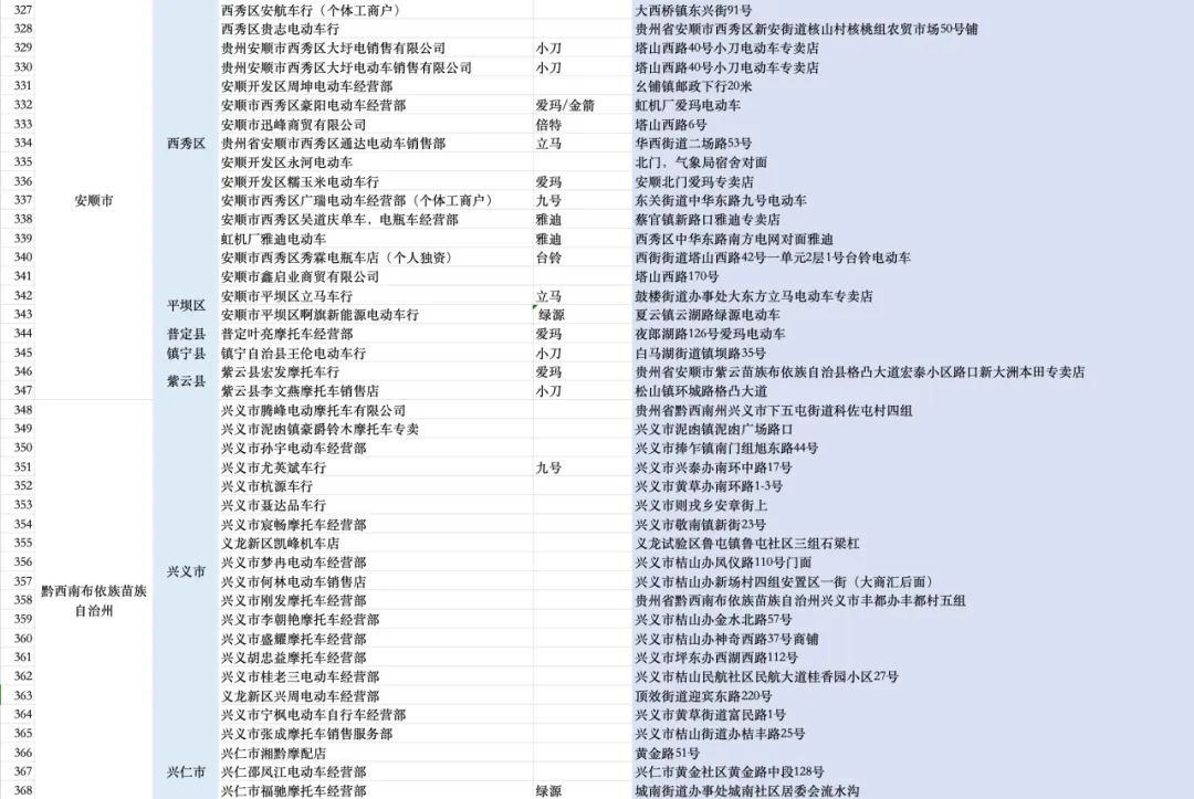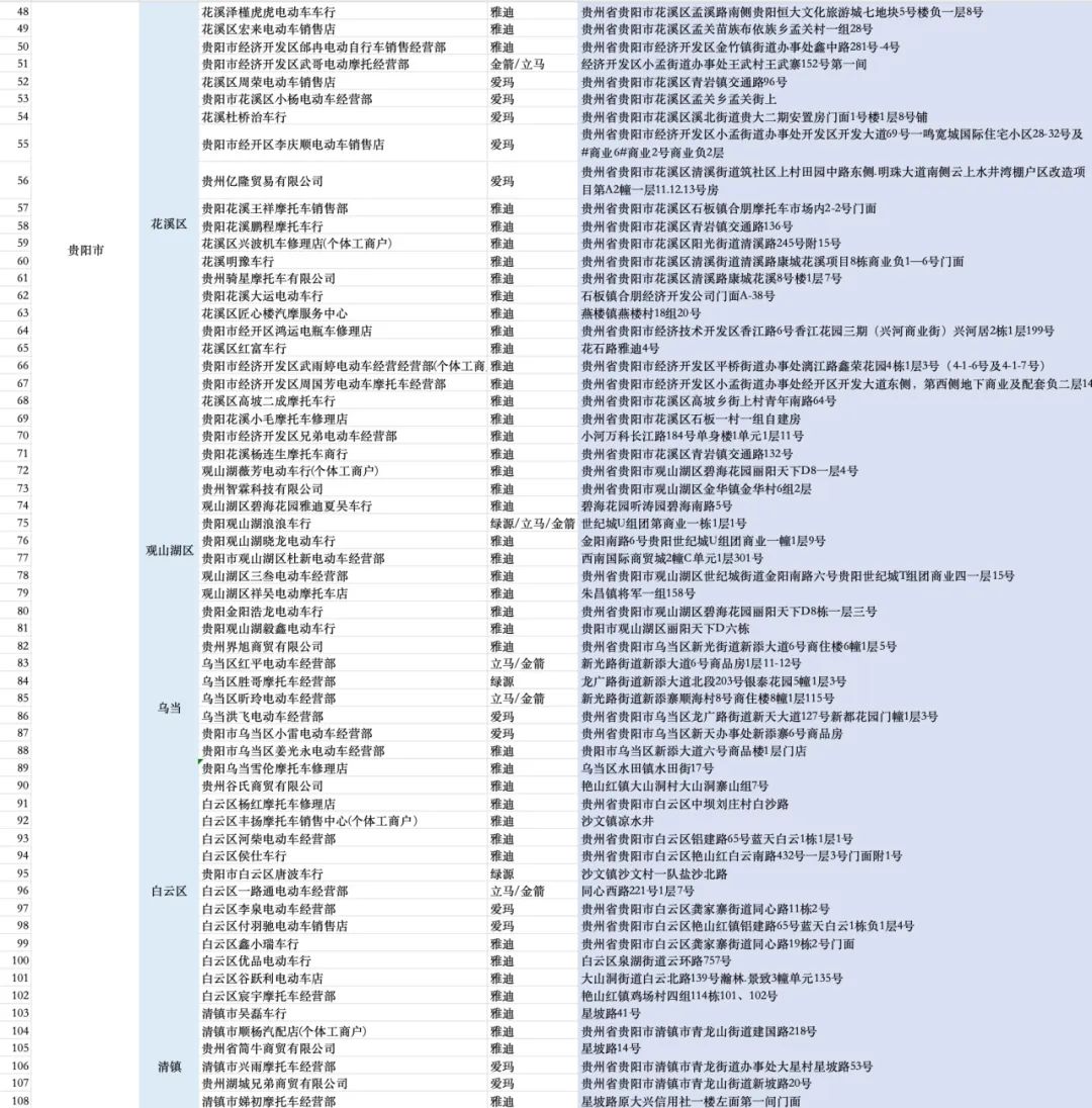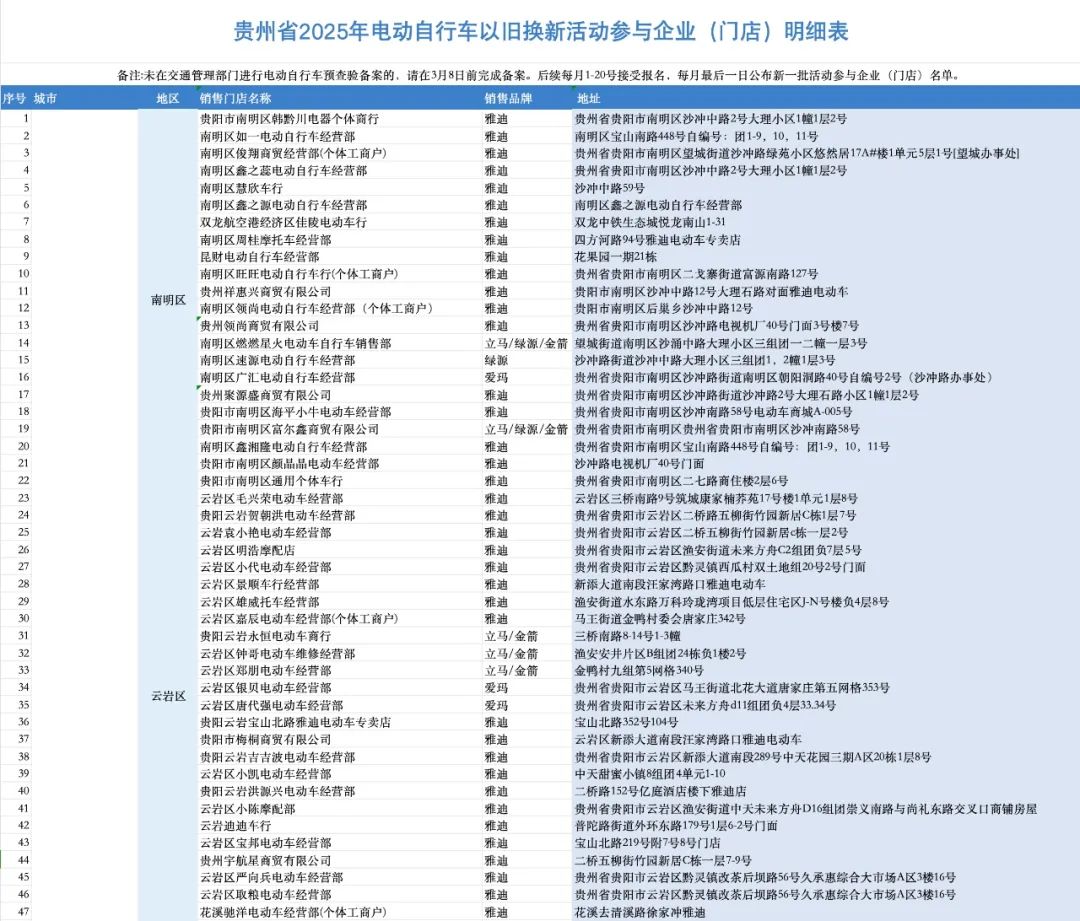 消费品以旧换新丨贵州省电动自行车以旧换新补贴参与活动企业(门店)一览!