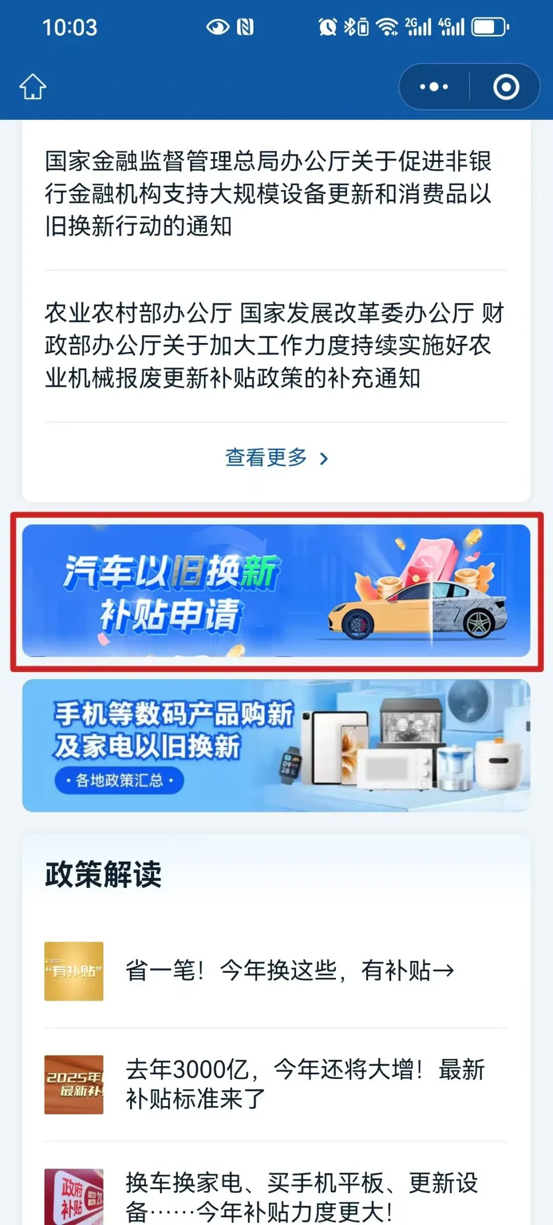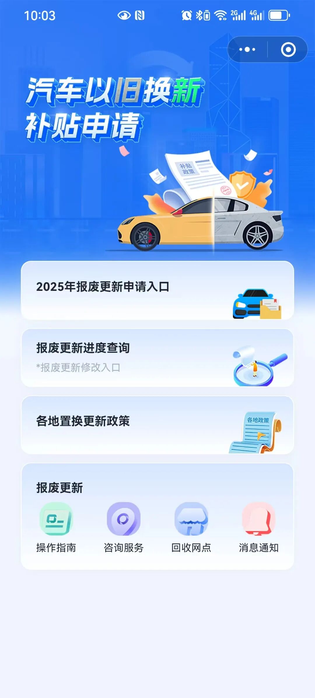 点击进入“汽车以旧换新补贴申请”。