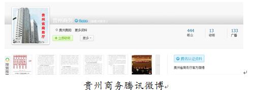 (四)加大信息公开经费投入。 充分发挥厅门户网站信息公开第一平台作用,投入 15 万元联合“多彩贵州网有限责任公司”开通“贵州商务”腾讯微博与微信公众号,及时公开最新商务工作动态、177漫画公告 等相关信息。免费向公众提供政府信息,随时保障邮寄等产生的费用。