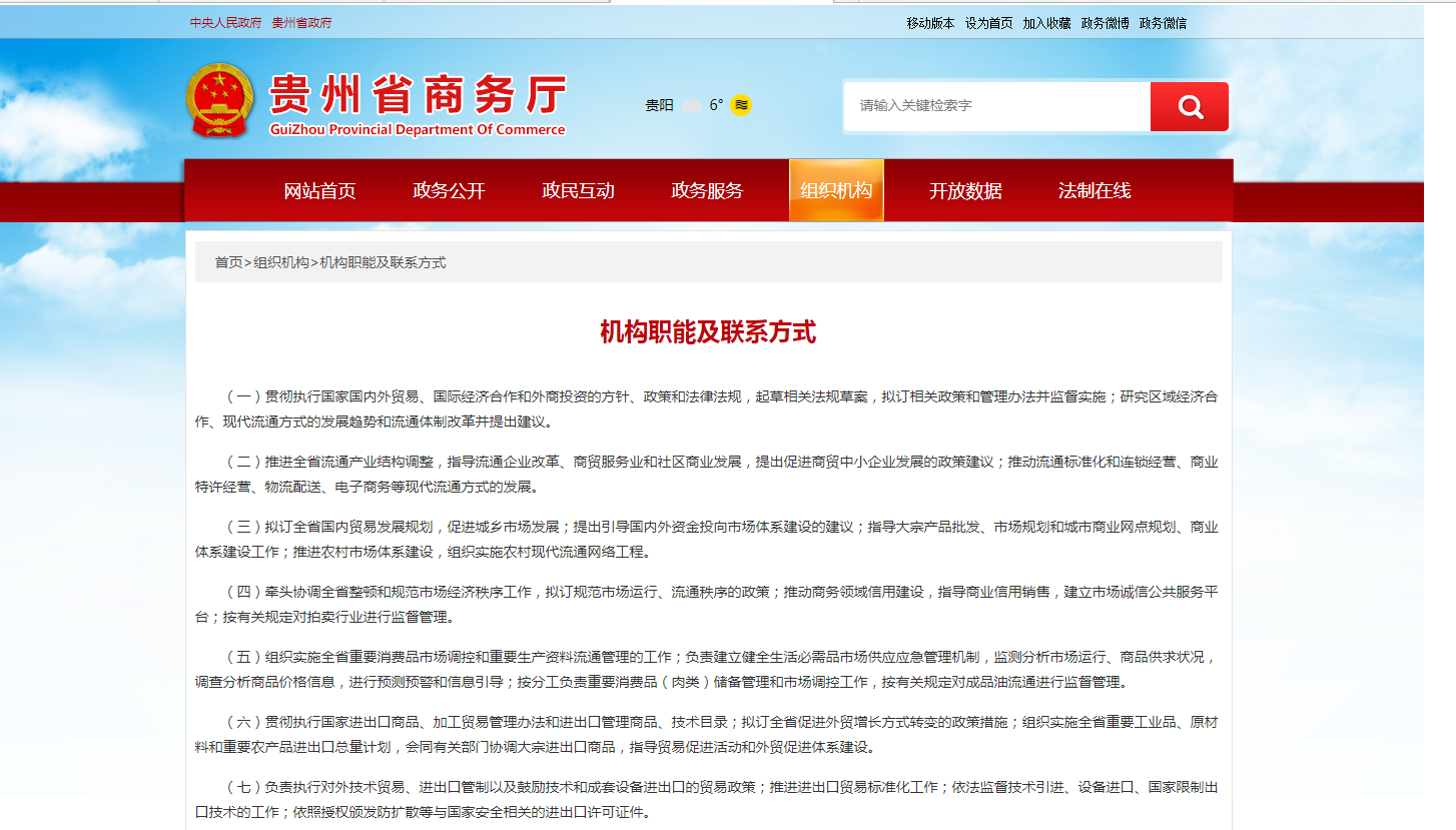 1.机关职能等信息公开。机构职能调整后,在商务厅门户网站组织机构栏目及时更新发布机关职能、机构设置、办公地址、办公时间、联系方式等信息。