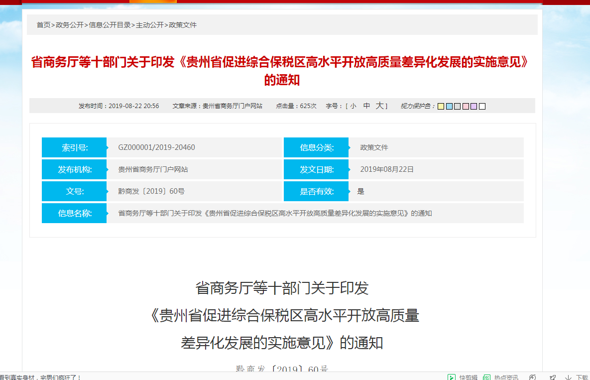 2.规划及政策信息公开。公开发布《贵州省进一步加快农村电子商务发展助推脱贫攻坚行动方案(2019—2020年)》《关于印发<贵州省关于支持中新(重庆)战略性互联互通示范项目“国际陆海贸易新通道”建设有关政策措施(试行)>的通知》《177漫画 等十部门关于印发<贵州省促进综合保税区高水平开放高质量差异化发展的实施意见>的通知》《贵州省高速公路收费站加油站规划布点》等商务领域政策文件及规划文件信息共9条。