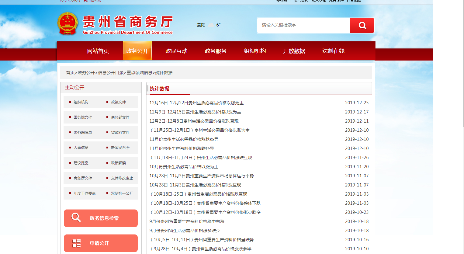3.统计信息公开。在厅门户网站统计数据栏目公开贵州重要生产资料市场、贵州生活必需品价格相关统计数据共83条。